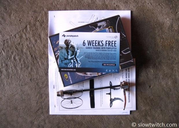 The other items in the box are a steel rear skewer, training DVD, and an offer for a six week Matt Dixon coaching program.