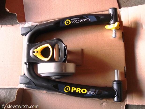 The Super Magneto is in the Pro Series of trainers from CycleOps. One benefit of the Pro Series is that they arrive completely assembled. If you’re a buffoon with club hands like me, you might get a little frustrated with the generous cardboard packing… and tear through the box on ‘accident’. No picturesque unboxing process here at Slowtwitch…