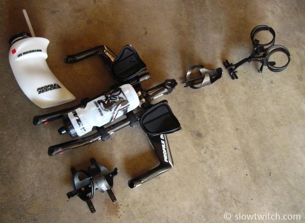 In that article, we detailed some of the key food-carrying options in the triathlon world today, along with the pros and cons of each. If you really like gel products, one easy option is to use EFS Liquid Shot, as it is available in pre-packaged flasks and large bottles. You could conceivably pour all nine (or more) of your gels into a single bike bottle that sits in a standard bottle cage – with zero gels taped to your top tube. If you like a certain brand of gel that is only available in small packets, you can look in to the various food carriers from brands like Dark Speed Works, Profile-Design, TNI, Xlab, and others. This may also influence your decision the next time you go shopping for a triathlon bike. Some have the ability to hold two bottles on the frame, while others only have one (or even zero in the case of some Giant frames). The Specialized Shiv Tri is unique in that it has one bottle cage on the frame, along with a unique internal bladder system. There are a lot of different options out there, so be sure to consider hydration/food options in addition to the frame geometry and other technical features of the bike.