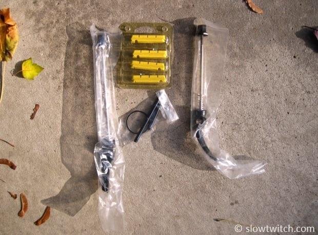 The photo above shows the accessories that come with each pair of Metron wheels – Swiss Stop yellow carbon pads, quick release skewers, valve extenders, and a 1.8mm spacer for use with 9 and 10-speed cassettes. The extenders require removable core valves; my favorite type.