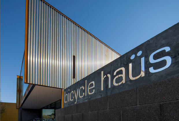 Scottsdale, AZ has a new cool bike shop. Not as in new kids in town, but newly constructed and impressive. Bicycle Haüs has been in Scottsdale since 2004 but the new 6700-square-foot building is sleek and modern with traditional elements such as an entire wall made from reclaimed barn wood and stairs that came from high-school bleachers from Missoula, Montana – where the owners are from. Bicycle Haüs is located at 7113 East 1st Avenue in Scottsdale.