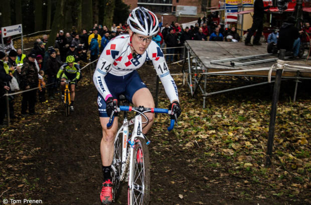 American Katie Compton prevented the comeback of Marianne Vos at the Namur Word Cup and here is another muddy gallery by Tom Prenen. The sun was shining a bit while the women raced but the conditions were still not too kind.