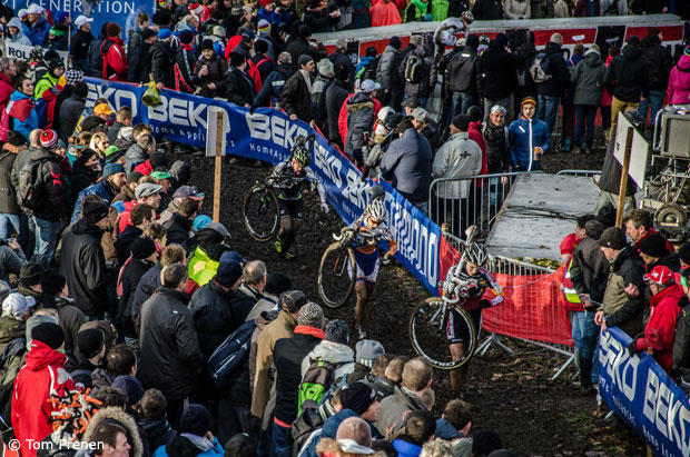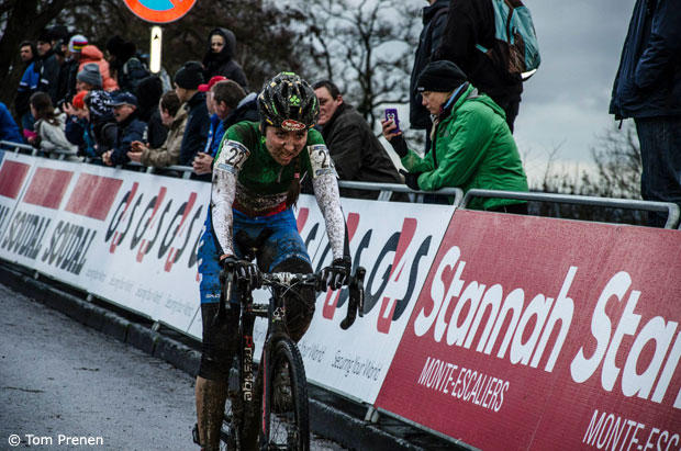 At this point of the race Marianne Vos was still in the lead but Katie Compton was closing in.