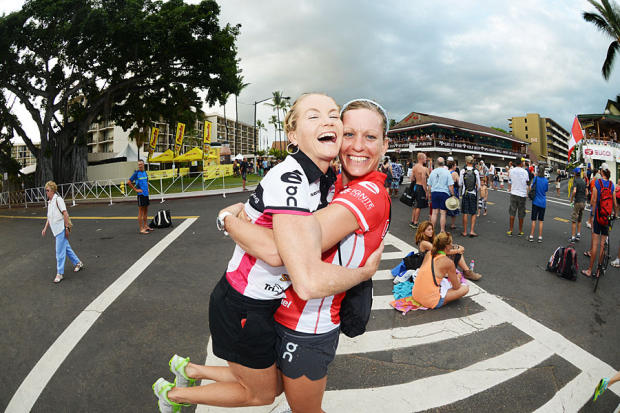 Team TBB mates Caroline Steffen and Mary Beth Ellis at Kona before the split.