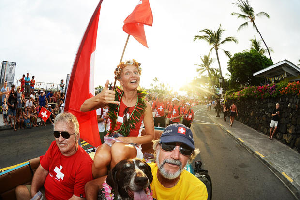 Natascha Badmann, still a strong contender at age 47, at the Kona Parade of Nations.