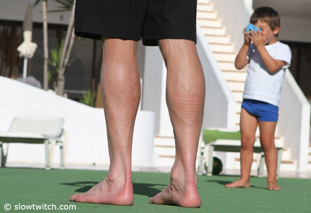 Not a slow Pro, but a comedian had fun with the lane marker.