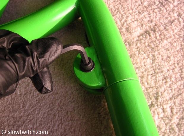 With the legs installed, all you have to do is snug down one 6mm bolt per side: