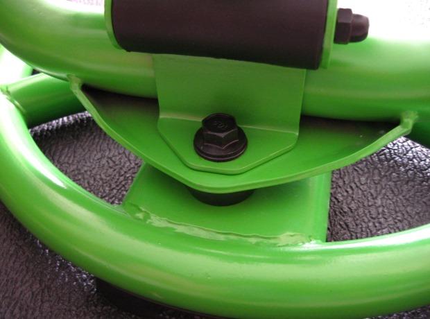As far as the side-to-side action of the Rock and Roll, I found it to be quite interesting. The frame uses several elastomers that ‘squish’ as you ride. Out-of-the box, I felt that the system leaned too easily – more than you would feel on an outdoor ride. There is an easy solution, however – just tighten down two large bolts to suit your preference: