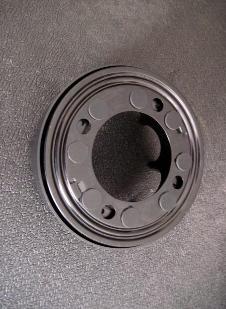 Kurt also sells a special riser ring called the Turntable, for $45. It swivels with your front wheel, aiming to give a more realistic ride. This is the bottom of the Turntable Riser Ring, showing the unique construction