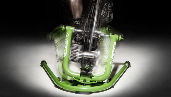 I’ve been on a roll testing a lot of trainers this winter. What better way to finish up than to review the latest version of the Rock and Roll? Made by Minnesota-based Kurt Kinetic, this fluid trainer is unique in that it pivots from side-to-side with you. If you lean to the left, the entire bike leans to the left. If you lean to the right, it leans to the right. If you play like Alberto Contador and lean your bike every which way during a massive mountain top sprint, the Rock and Roll will follow your every move.