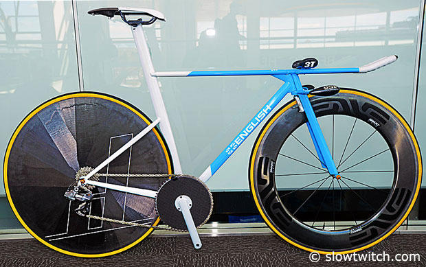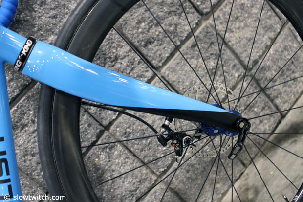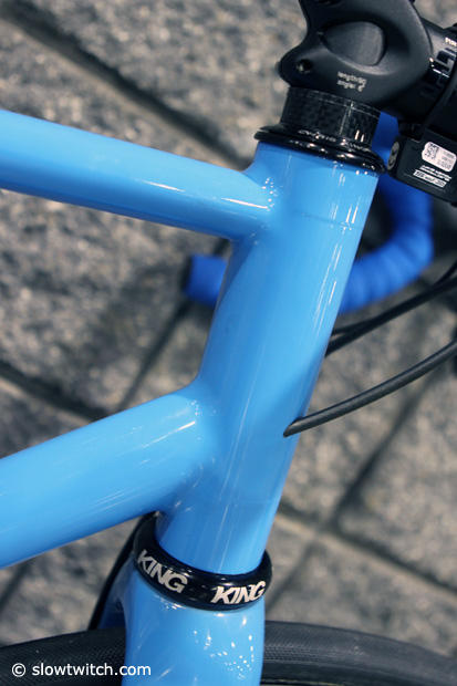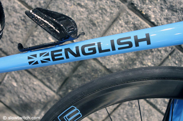 Rob English did not exhibit at the 2014 Handmade Bicycle Show but we spotted this beautiful crafted bicycle of his in the Campagnolo booth and snagged it for detailed pics.