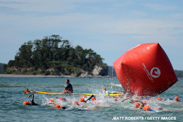 Frederiksen was first woman out of the water in 24:21, 1:04 ahead of Canadian Karen Thibodeau 1:53 ahead of Chilean Valentina Carvallo, 2:20 ahead of Wurtele and 2:54 ahead of the ever-dangerous runner Snow.
