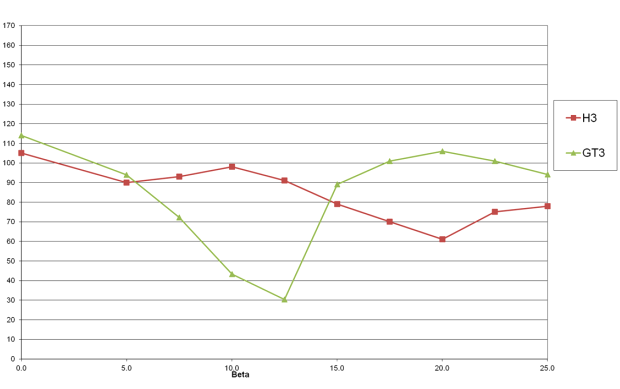 The following graph shows the H3 (with 19mm tire) to the GT3 (with 21mm tire). Hed says that they wanted to optimize the wheel for the low-to-mid yaw ranges that are common among professional racers that choose this wheel.