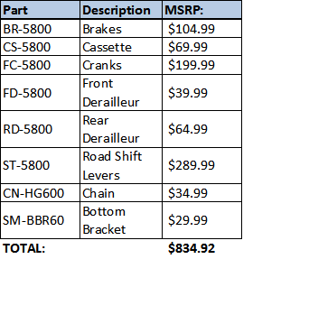 Interestingly, and perhaps sadly, it appears that Shimano is slowly but surely killing their triple chainring cranks. In a move largely started by SRAM, the industry is going to two chainrings for road bikes and not looking back. I’m personally bummed to see Shimano take this route, but I have to imagine it was at least half caused by declining sales. Dura Ace triples died with the 7900 series, Ultegra triples kicked the bucket with 6800, and 105 has finally called it quits with 5800. 11-32 cassettes help to mitigate our problem, but still do not match the overall gear range of triple systems.