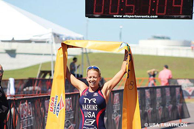 In her third race back from the birth of her child, Sarah Haskins won her third in a row in 2014 and Cameron Dye topped the men’s field at the Life Time Fitness Olympic distance race at South Beach today.