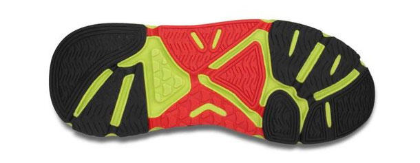 Hoka, likewise, not only resists adding flex to this part of the shoe, it actively works to keep the shoe stiff! This shoe will not flex in the very place that other shoes are made to flex. The shoe presents, as a gift to the runner, a rigid lever to grant a mechanical advantage during the push phase. This is not just a minor departure from the way footwear was conceived and designed in the past.