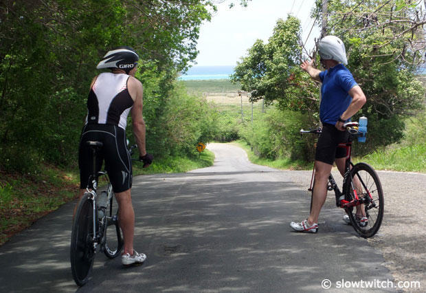 I say that because you’re going to forget all that in the first 20 miles of the bike, so I need to drill this in, ‘It’s not about the bike, it’s about the run.’ Everyone will be a Kona champion in the first 20 miles but these miles barely count in St. Croix. This segment of the bike course is ridden on turbo overdrive by many athletes, but it is not the place to burn matches. The racing in St. Croix only starts when you have climbed and descended the Beast.