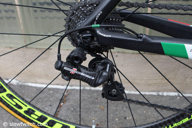 Campagnolo Record EPS shifting and a chain that could use a bit of love and attention.