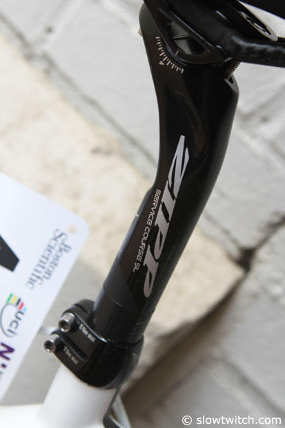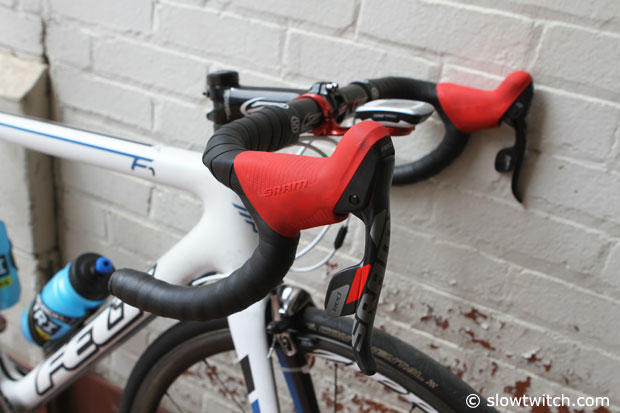 Zipp Service Course SL bars and stem and SRAM Red controls.