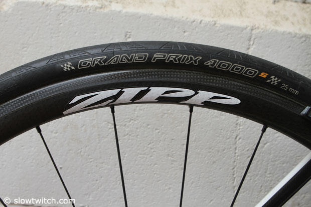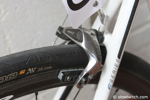 It is pretty tight quarters under that SRAM Red brake with a 25mm tire. You can also see the K-Edge number plate holder.
