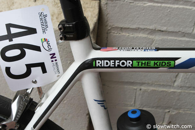 TWENTY16 rider Alison Tetrick won the KOM and Sprint titles at the 2014 Winston-Salem Cycling Classic, and where is your opportunity to see her SRAM and Zipp equipped Felt F1 race bike. The 5' 9' Tetrick raced triathlon events before she was lured to the road and still likes and excels at TTs.