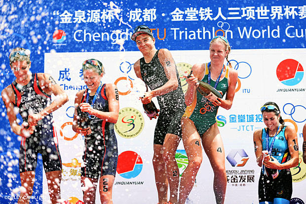 Wian Sullwald of South Africa and Gillian Backhouse of Australia won their first career World Cups Saturday in the debut of Chengdu on the ITU calendar. Two U.S. triathletes also earned their first ITU World Cup podiums with silver medals as Kevin McDowell lost a finish line sprint with Sullwald by 1 second and Jessica Broderick finished 29 seconds behind Backhouse.