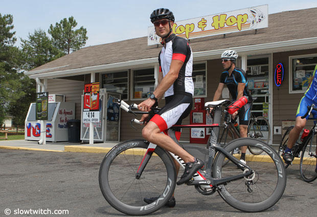 Getting ready for a 40 mile ride with some friends, and Wise took out his Shiv to get used to this new ride.