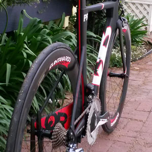 The lines of this QR are clean and simple and for the race on Sunday Millward will race a C75 front and a Shimano disc in the rear.