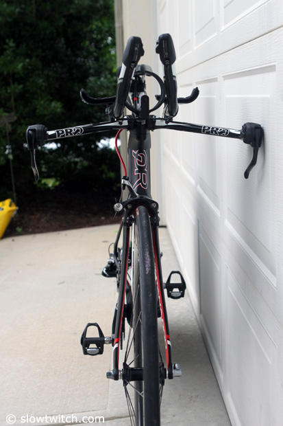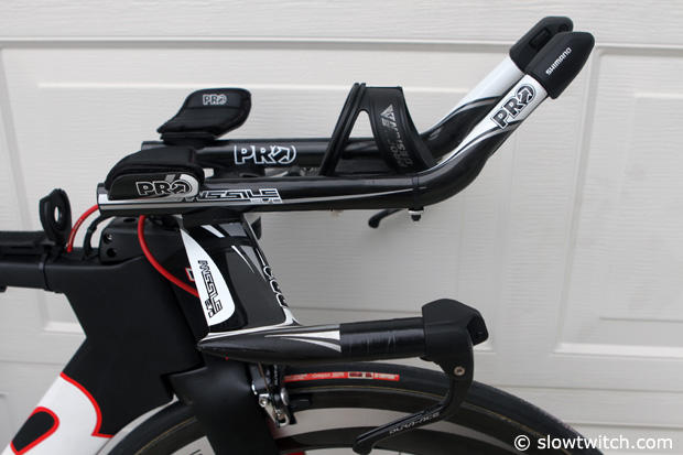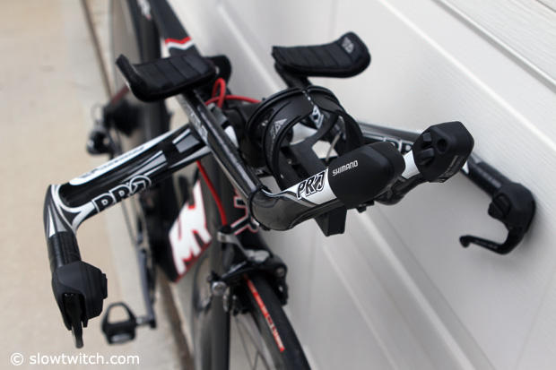The view of the cockpit from above shows that Millward uses a Profile cage to keep his water bottle between the arms.