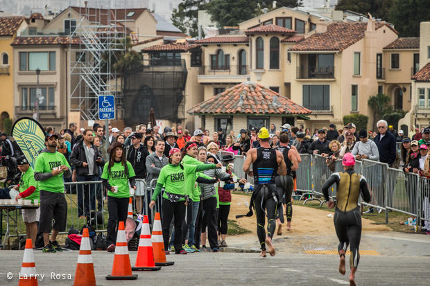 Andy Potts and Sarah Haskins escaped from Alcatraz with the titles and the bragging rights, but it surely wasn't easy. Below are images from the dreary day courtesy of Larry Rosa.