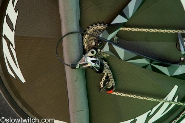 The aero cover of the front brake and the cables is not standard on any Scott Plasma. And the bento box is new too.