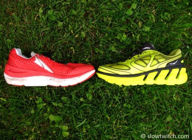 Pictured above: Altra Paradigm (left) vs Hoka Conquest (right).