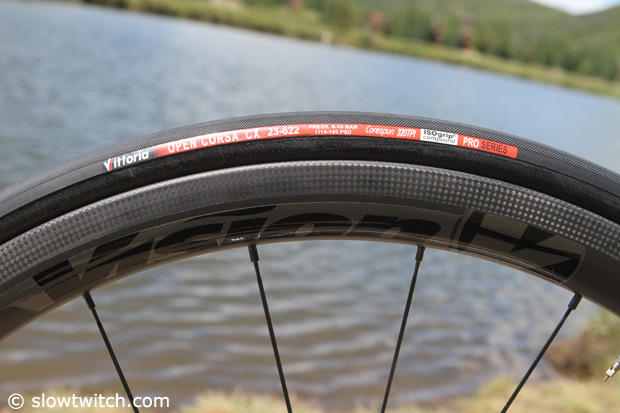 Vittoria Open Corsa tires on the vision Metron 40 wheels.