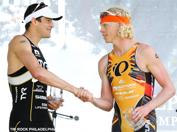 Cam Dye beat Andy Potts on the bike and Alicia Kaye ran away from Sara McLarty at Tri Rock 5i50 Philadelphia.
