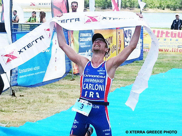 Francois Carloni of France and Kathrin Müller of Germany won their first major XTERRA victories at Lake Plastira in Greece.
