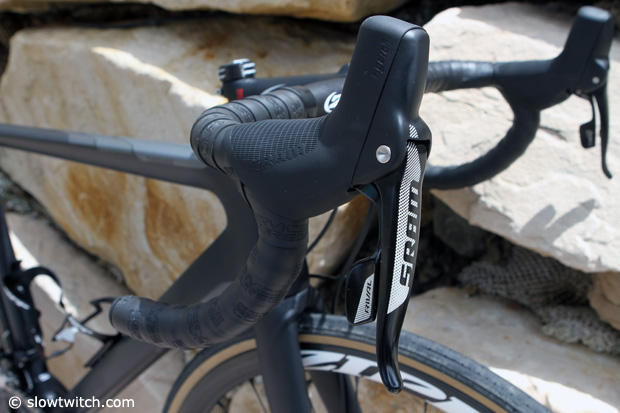 At first glance onlookers will have a hard time distinguishing these Chorus EPS shift levers from their Super Record and Record bretheren. Carbon galore.