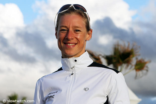 Jodie Swallow set the pace in the women's race, but unlike the men's race it was a very tight affair with quite a few Pros in easy striking distance throughout the bike segment. Among the other players near the front were Mary Beth Ellis, Camilla Pedersen, Corinne Abraham and Natascha Badmann. Yes, the Swiss Pro who has won 6 Ironman World Championship titles from 1998 through 2005, and who simply does not seem to slow down much. The top 9 women were in fact only 4 minutes apart as they reached the bike-run transition.
