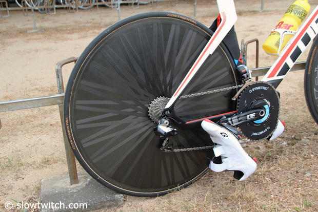Raelert rode a Shimano Dura-Ace Di2 11-speed drive train and a unlabeled Lightweight disc in the rear with an Easton 90 up front.