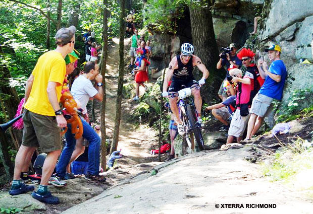 After emerging from the swim in close proximity, Currie and Dan Hugo of South Africa had a ding-doing, back-and-forth battle on the technical but fast bike course which featured short steep technical climbs and white knuckle downhills. While Currie and Hugo posted near identical swim and bike splits, they were shadowed the whole way by Australian Ben Allen, who finished the bike leg a two and a half minutes back starting the run.