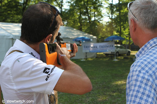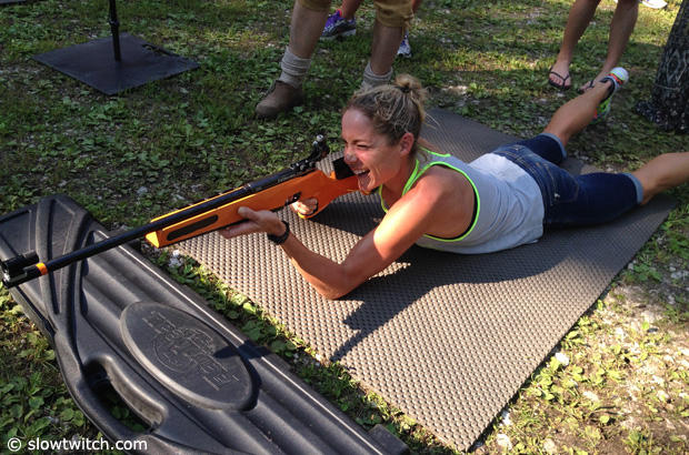 Eneko Llanos and most of the Pros gave this Biathlon setup at the Erdinger party a good shot.