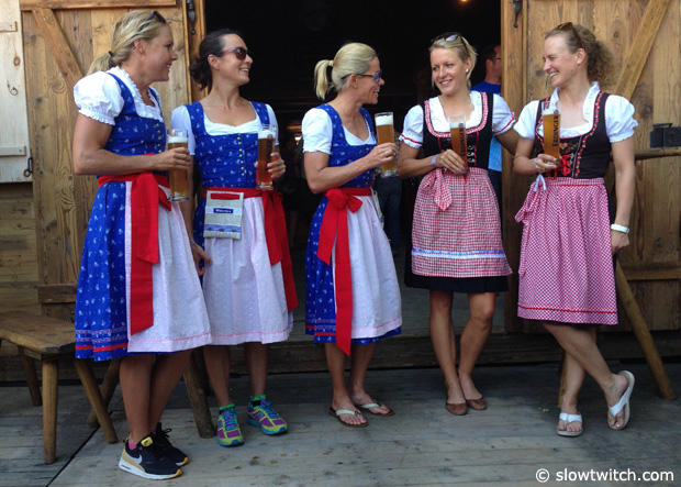 Some of the Pro females at this 30th edition of Challenge Roth had a great time in their Dirndl outfits at the Erdinger event.
