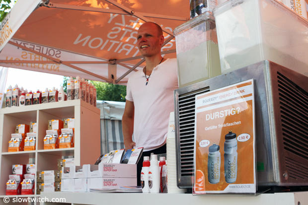 The Squeezy group like all other nutrition vendors here charges consumers to fill up their bottles.