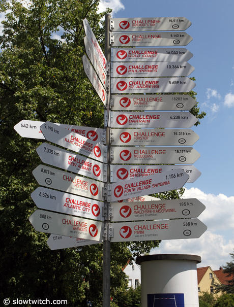 Outside the registration tent this finish arch reminds folks that next year a month before Challenge Roth there will be a Challenge Heilbronn half distance event. This popular race was previously known as City Triathlon Heilbronn.