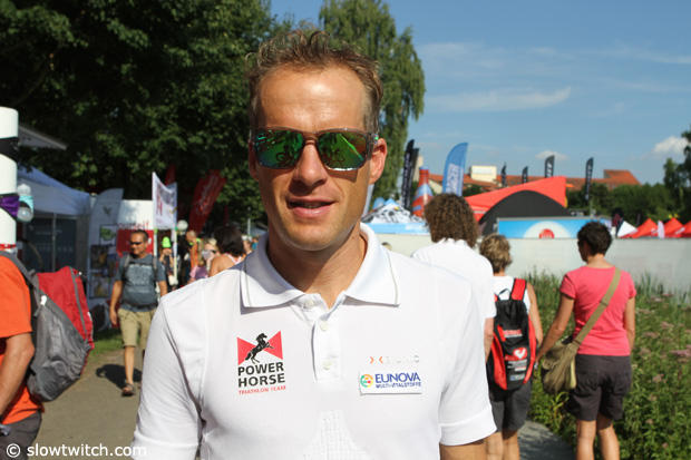 The German Telekom brand partnered with SAS Technologies on this tracking device that will be tested on 30 athletes – most of whom will be Pros. This 95mm x 45mm x 18mm device sends position data every 30 seconds via the mobile Telekom network to a Telekom cloud. This allows folks to track athletes all day, but currently only on the bike and the run. There is also an emergency call button on the device, that can be used with one push to get technical assistance, or 2 pushes will alert emergency vehicles. The device also can track drafting, and would be likely a very good tool. This year it will be tested behind the curtains, but if all works out, it might be featured with all athletes next year. The next generation is already in the works and it will be smaller and work also during the swim. What holds the current device back from the swim is the signal coming past the wetsuit and the water above the athlete.