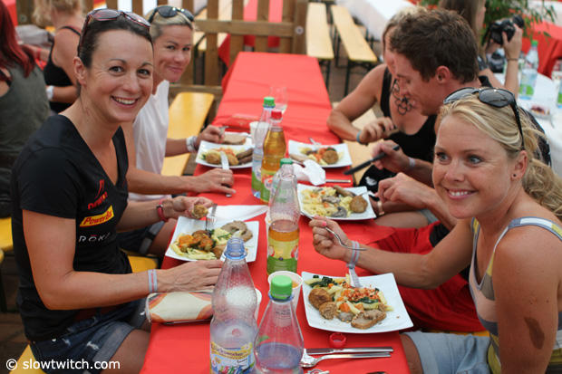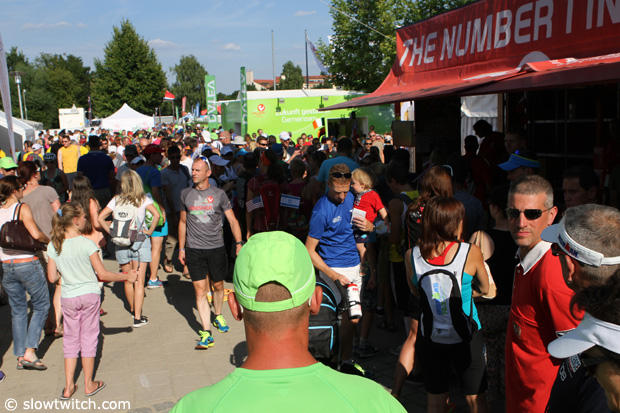 Athletes started to line up at 5:40 for the 6pm carbo loading event.