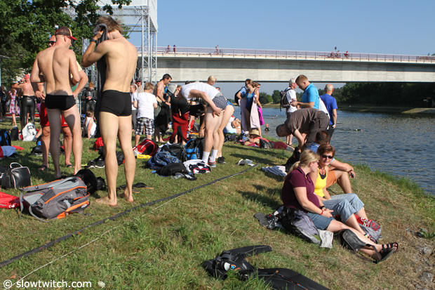 Earlier in the day the canal was busy with swimmers testing out the race course.