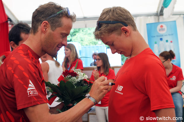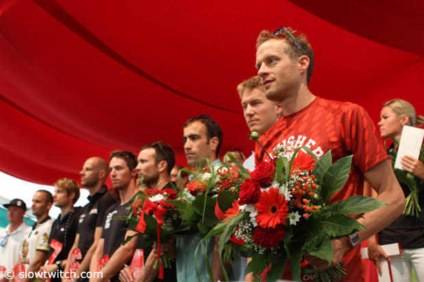Timo Bracht wore his Finisher t-shirt on stage to honor all those who started on that hot day in Roth.