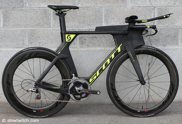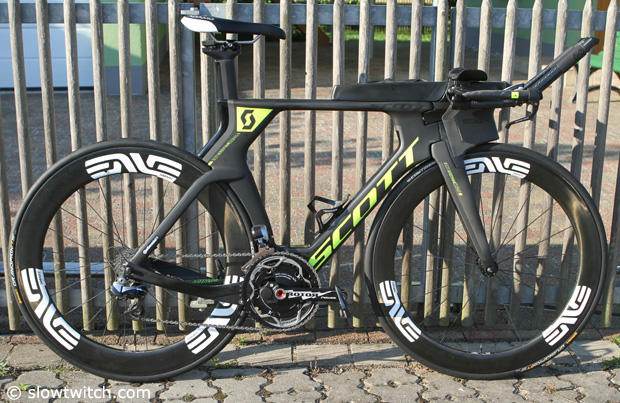 The Scott triathlon shoes match the new graphics package nicely.