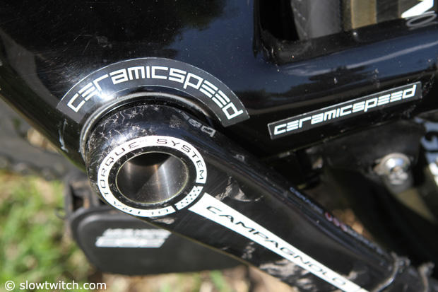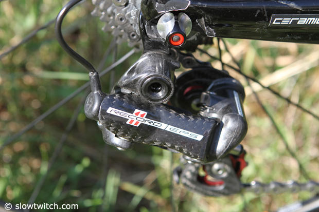 Campagnolo Record EPS derailleurs with CeramicSpeed pulleys in place.