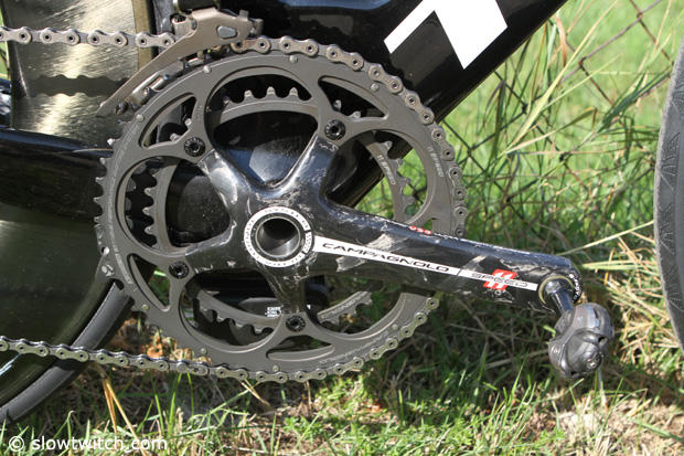 All Trek Factory Tam pilots ride on Campagnolo components.